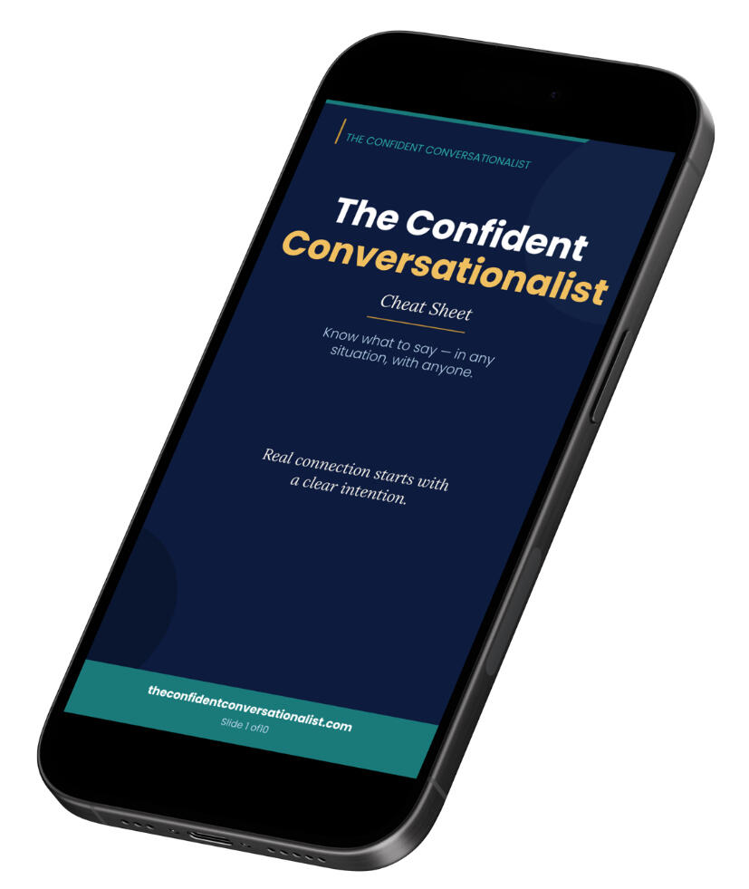 Download the free Confident Conversationalist Cheat Sheet - 5 minutes to read, use it tonight.